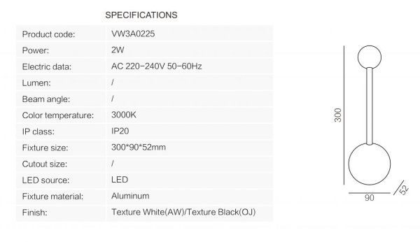 | Installasjon vegglampe: | Fast montering/Skrus opp |
