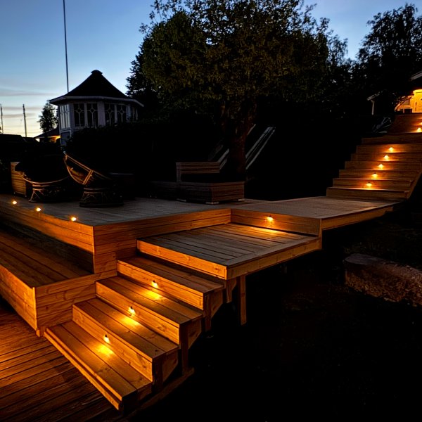 Hageplugg & Spill fra LightsOn. Et fleksibelt og rimelig 12-voltssystem (sikker svakstrøm) for hagen din, som du enkelt installerer selv og senere kan bygge på, opptil 50 meter, hvis du vil. Lampene har varmt lys og skandinavisk design, tilpasset klimaet vårt oppe i nord. Ikke glem transformator. Tenk på å velge en transformator som passer til det totale antallet watt på lysene dine. For optimal levetid anbefaler vi at du ikke belaster transformatoren med mer enn 85 % av maksimal kapasitet. Gjør det enklere! Legg til en lyssensor som automatisk slår på belysningen om kvelden.