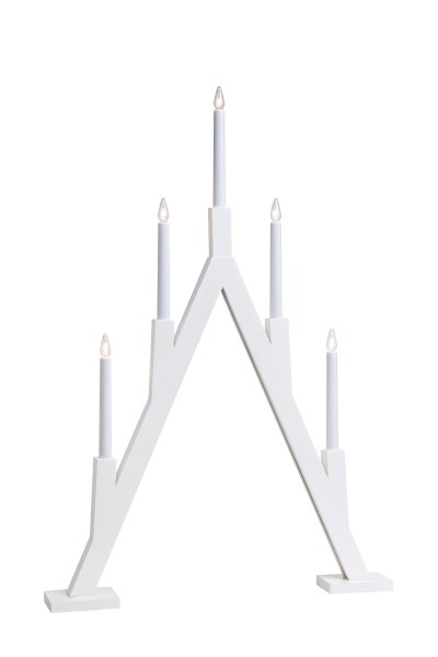 Bjurfors lysestake fra Marksløjd blander rette former med et klassisk design. Fot i hvitt tre og hvite plastlys. Plasser den i vinduet eller på skjenken i stuen og skap en vakker julestemning. Leveres med en 2 m hvit plastledning, strømbryter og støpsel. Inkluderer 5 utskiftbare E10-pærer på 55V.