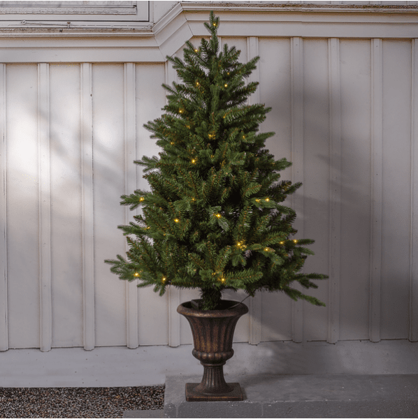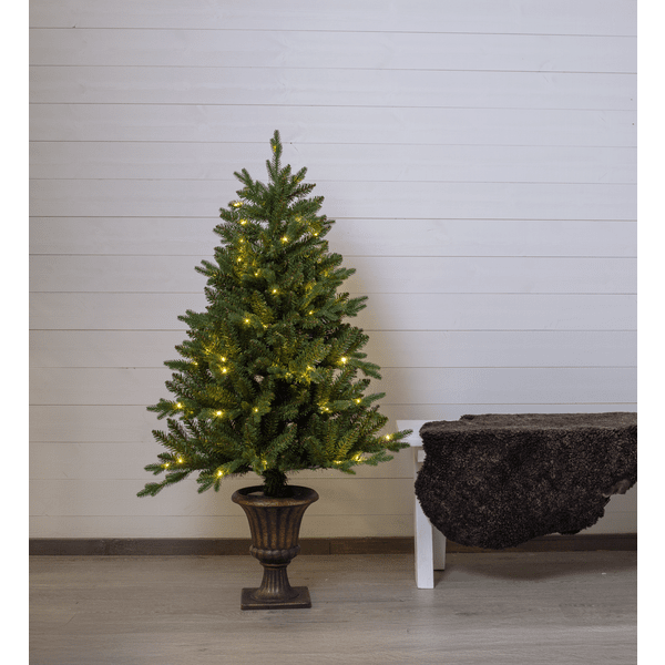 Vakker, grønn dekorativ wire med 80 små LED-lys som gir en fin varm hvit glød. Med denne granen kan du justere grenvinkelen slik du vil, fordi det ikke er noen stopp. grenene. Kan brukes både innendørs og utendørs. Potten er inkludert. Utstyrt med timerfunksjon, 6 timer på, 18 timer av, repeterende. 30 cm grønn tilkoblingskabel til batteriboksen som drives av 3 AA-batterier, ikke inkludert. Brennetid: ca. 60 timer.