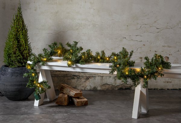 Batteridrevet krans med 30 LED-lys. En dekorativ krans med en varm hvit glød. Den innebygde timeren gjør det enkelt å stille inn når produktet skal lyse.