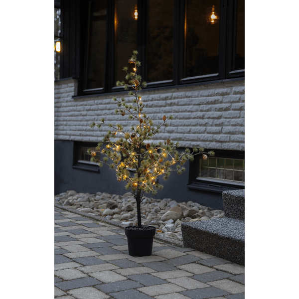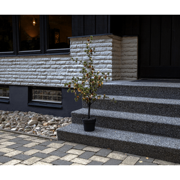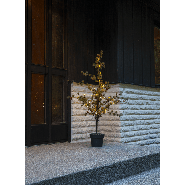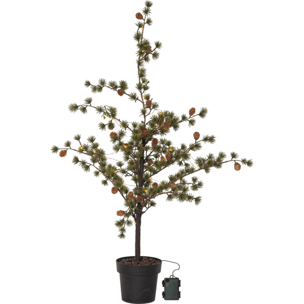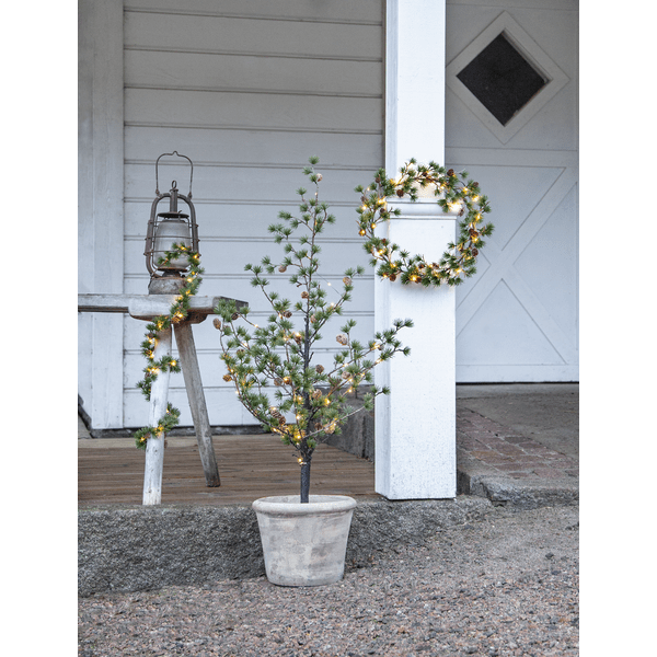 Larix-granen har dekorative grener med nåler som ser ut som lerkenåler. Disse er laget av PE-materiale, som er et godt miljøvalg. Med 40 varmt hvitt lyspunkt lyser den vakkert opp og er flott å bruke som et innbydende trappetre utendørs eller innendørs i en gang eller på et barnerom. Den drives av 3 AA-batterier (ikke inkludert) og har også en timerfunksjon (6 timer på, 18 timer av, repeterende), og når bryteren er i timermodus, lyser granen i omtrent 20 dager. Leveres med en 30 cm kabel til batteriboksen.