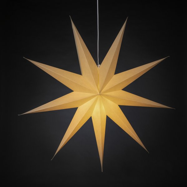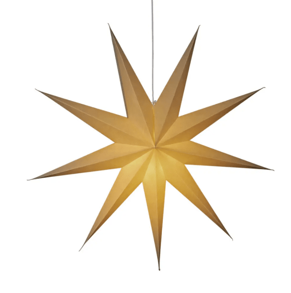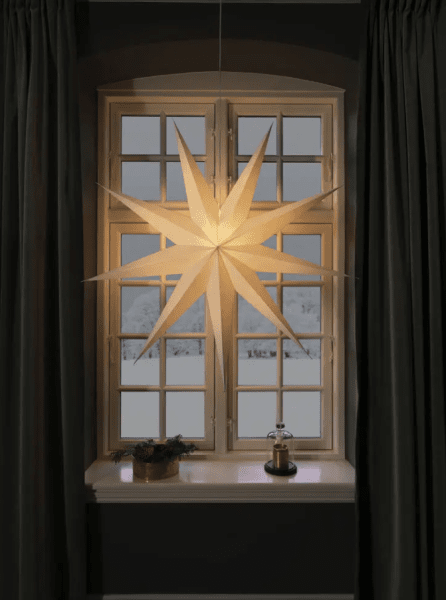 Lys opp desembermørket med denne klassiske papirstjernen i en grå/beige nyanse. Med sitt stilige design og myke lys sprer den en rolig og hjemmekoselig julefølelse. Perfekt å henge i vinduet eller mot en vakker vegg – en tidløs dekorasjon som forgyller hvert rom med enkel eleganse. Leveres med 5m hvit ledning, strømbryter og støpsel. Lyspære følger ikke med.