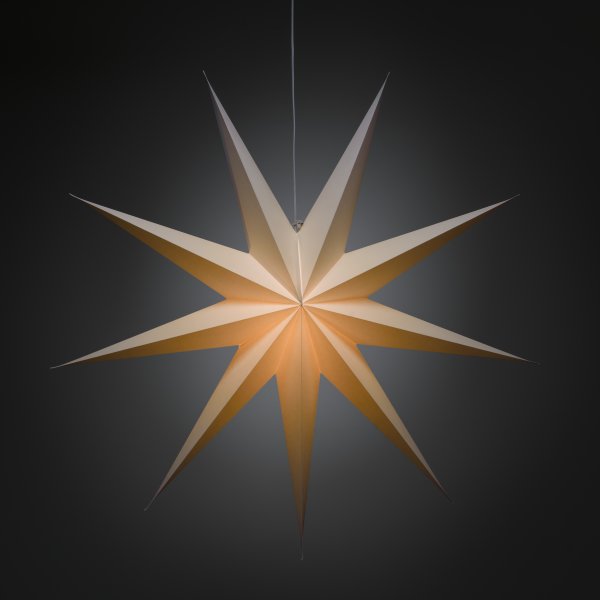 Lys opp desembermørket med denne klassiske hvite papirstjernen. Med sitt stilige design og myke lys sprer den en rolig og hjemmekoselig julefølelse. Perfekt å henge i vinduet eller mot en vakker vegg – en tidløs dekorasjon som forgyller hvert rom med enkel eleganse. Leveres med 5m hvit ledning, strømbryter og støpsel. Lyskilde er ikke inkludert.