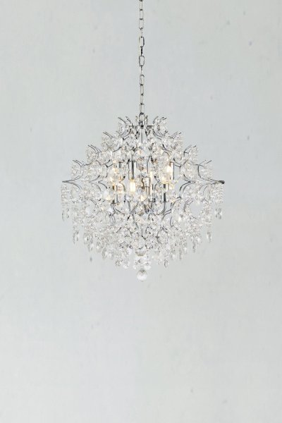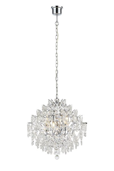 Denne praktfulle krystalllysekronen fra Rosendal-serien forvandler stuen din til et glitrende festlokale. Med sine vakre maskinskårne prismer og en forkrommet metallramme gir den et eksklusivt preg. Kjetting på 1,5 meter og takpannen er inkludert for enkel oppheng. Lyspærer er ikke inkludert.